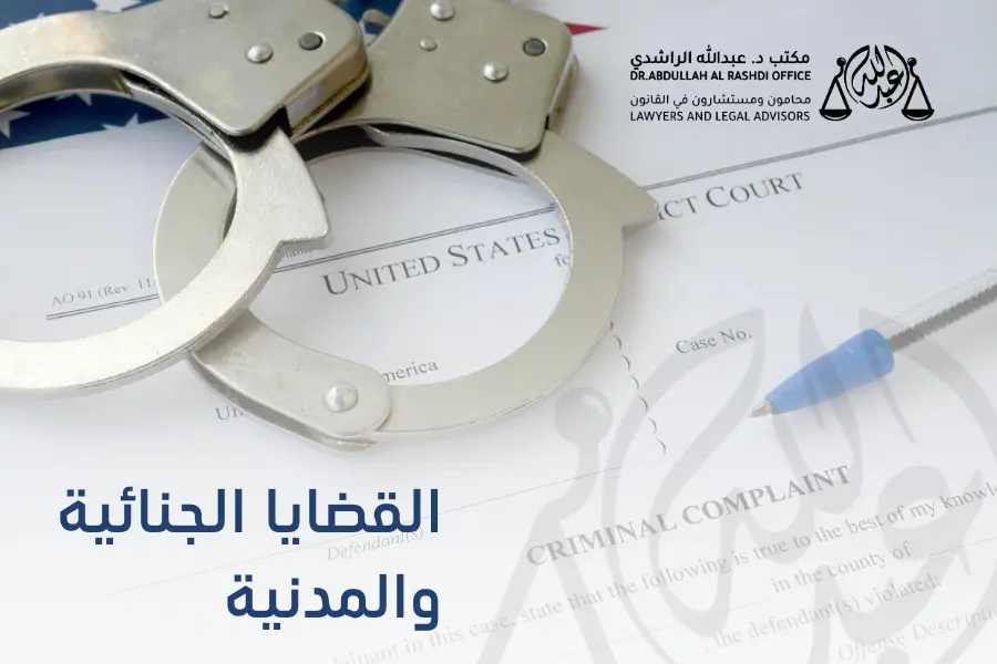 يقوم المكتب بمباشرة جميع الدعاوى الجنائية والمدنية لما له من خبرة بوجود محامين ذو خبرة كبيرة في مباشرة تلك القضايا كما يقوم المكتب بالحضور مع الموكل أثناء التحقيقات لدى الادعاء في قضايا الجنايات حتى احالتها للمحكمة ثم مباشرة الجلسات وتقديم المذكرات والمرافعة الشفوية واستدعاء الشهود والاستماع إليهم حتى انتهاء المحاكمة ، ويقوم المكتب بمباشرة جميع القضايا المدنية وعمل اللازم قانونا حتى تنفيذ الأحكام الصادرة لصالح موكلنا أو ضده مع اتخاذ كافة الإجراءات القانونية.